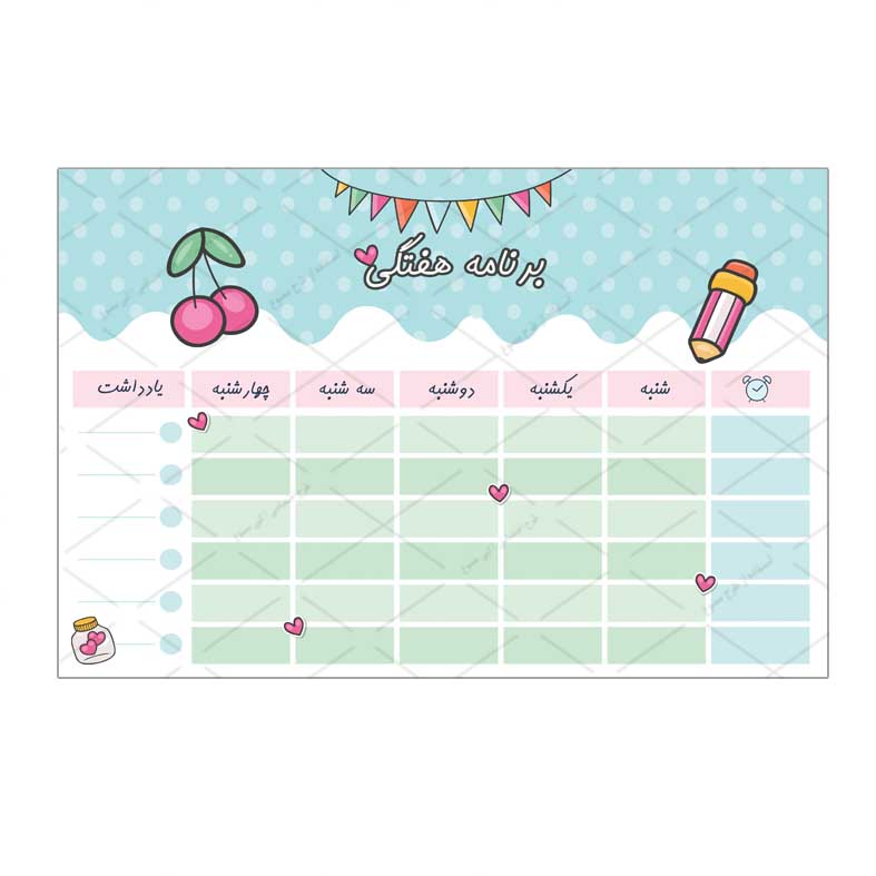 خرید محصول برنامه هفتگی طرح گیلاس کیوت از فروشگاه کیوت استار
