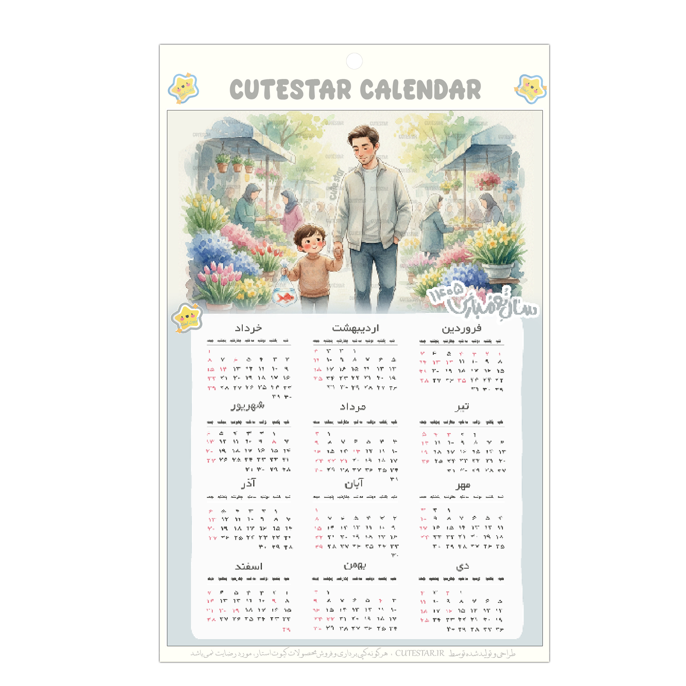 ویژگی های تقویم دیواری سال 1405 طرح خرید ماهی قرمز:
