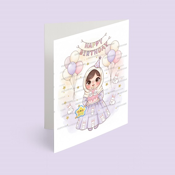 خرید کارت پستال دختر مدل تم تولد خرگوش مجموعه 6 عددی از فروشگاه کیوت استار