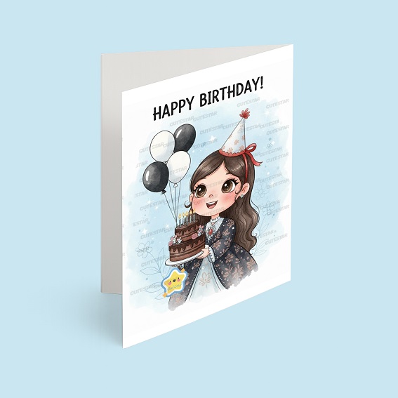 مشخصات کارت پستال دختر مدل تم تولد سیاه سفید :